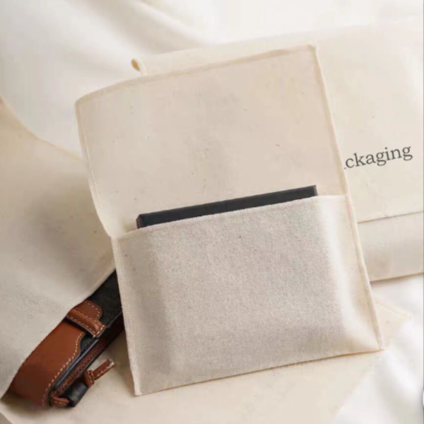 Sobre en lienzo con cinta de cierre. Se arma a medida de lo que necesite el cliente.